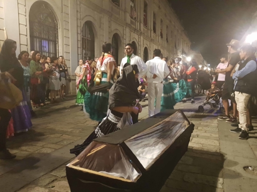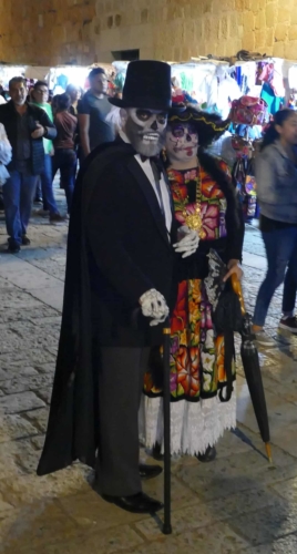 Nous n’avons pas été déçus des autels offerts aux défunts dressés à tous les coins de rues, dans les hôtels, les boutiques, sur la place publique, qui égaillaient magnifiquement le paysage, des parades joyeuses et colorées surgissaient de tous les côtés, entraînant touristes et promeneurs.