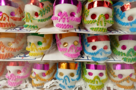 Bon à savoir : Pas de larmes dans le cadre de cette tradition qui remonterait à l’époque pré hispanique, et qui fait si bien partie du patrimoine culturel mexicain qu’elle a été reconnue par l’UNESCO comme appartenant au patrimoine immatériel de l’humanité. Si elle débute les derniers jours d’octobre, elle atteint son point d’orgue les 1er et 2 novembre. Ses symboles les plus significatifs sont : l’autel garni d’offrandes aux défunts, constitué des choses qu’ils préfèraient, les fleurs oranges Cempazútchil qui recouvrent les autels et qui font un chemin pour guider les morts (allez, si tu as vu « Coco« tu sais de quoi je parle, sinon tu sais ce qu’il te reste à faire ;-), le pain des morts, les calaveras (confiseries en forme de crâne au sucre ou à la pâte d’amandes miam, miam). Mais l’un des symboles forts demeure la Catrina, cet élégant squelette féminin drapé de ses plus beaux atours.