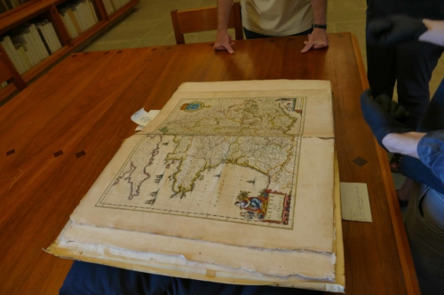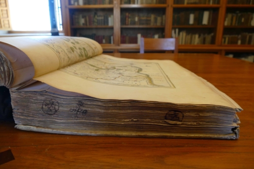 Grâce aux connexions de Florence, (nôtre amie qui réside depuis plusieurs années au Mexique) nous avons pu pénétrer dans un endroit où peu de monde a accès : Les coulisses de la bibliothèque du convent de Santo-Domingo. Cette visite fut menée de main de maître par un des esprits les plus brillants (et modestes) qui nous ait été donnés de rencontrer. En effet, le jeune conservateur des lieux, nous a gentiment donné accès à des ouvrages de plusieurs siècles, dont un atlas de 1663 édité en 8 volumes, une bible de 1576 écrite en 5 langues dont le latin, le grec et l’hébreu, il y avait peut-être de l’araméen mais je ne suis plus très sûre, des cartes, des ouvrages scientifiques… Nous étions émerveillés d’accéder à ce petit bout d’histoire et écoutions religieusement David.