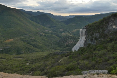 Les étonnantes cascades pétrifiées de Hierve del Agua, des formations rocheuses à la couleur blanche non pas due à une eau qui s’écoule en cascade, mais à des dépôts laissés par une eau très calcaire qui leurs confère cet aspect de cascade pétrifiée.